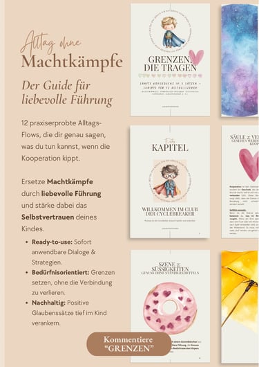 Für die Klarheit am Tag: Lerne im Guide „Grenzen, die tragen“, wie du liebevoll und bestimmt die Führung übernimmst, ohne dein Kind zu beschämen.
